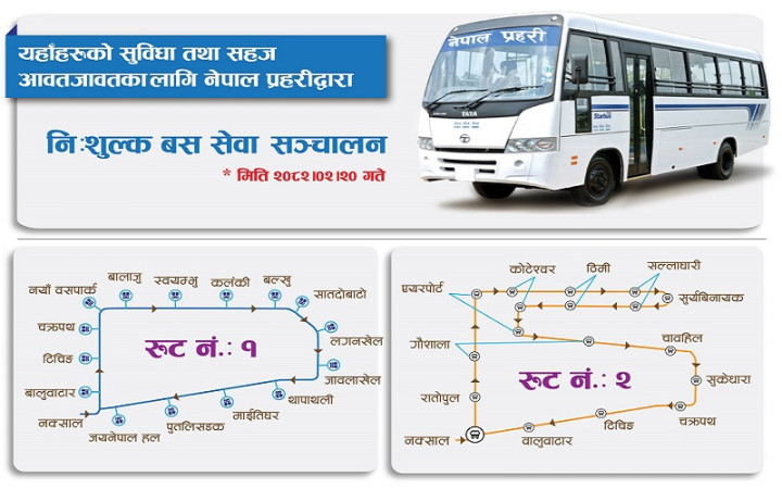 काठमाण्डौ उपत्यकामा आज पनि प्रहरीको निःशुल्क बस सेवा