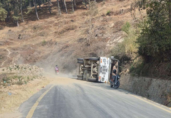 नेपालगञ्जबाट काठमाण्डौका लागि छुटेकाे बस चितवनमा पल्टिँदा २३ जना घाइते