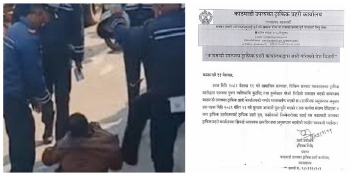 काठमाण्डौमा सर्वसाधारणलाई कुट्ने चार जना ट्राफिक प्रहरीलाई कारबाही